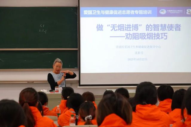 会前,青浦区爱国卫生和健康促进指导中心沈彩芳、上海市健康促进中心团总支书记、控烟与监测评价部承语芝和上海市健康促进中心方玲分别以《控烟劝阻技巧与中医戒烟法》《烟草危害与控烟法规政策解读》和《第八届中国国际进口博览会志愿者健康防护专题培训》为主题,对我校第八届进博会志愿者进行岗前培训。