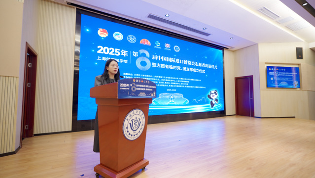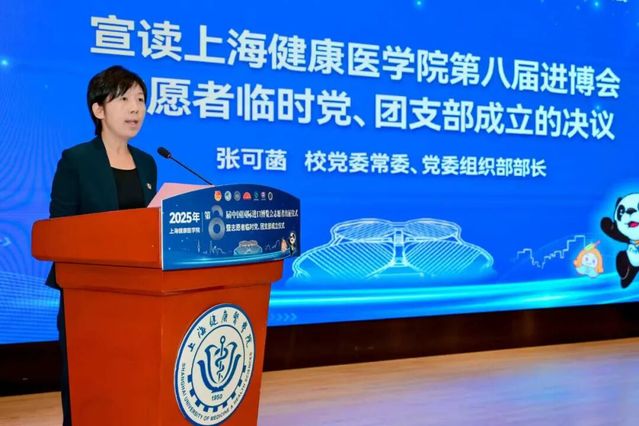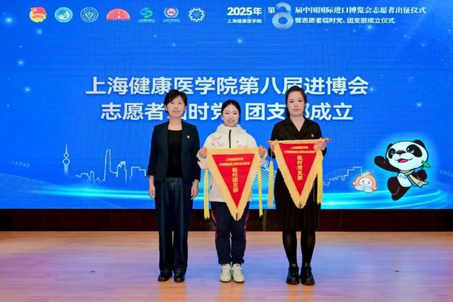 为深入贯彻习近平总书记关于进博会“越办越好”的重要指示精神,上海健康医学院第八届中国国际进口博览会志愿者临时党、团支部正式成立。校党委常委、组织部部长张可菡宣读成立决议并为临时党、团支部授旗。在临时党团支部的坚强引领下,健康“小叶子”将在服务进博的最前沿,充分发挥党员先锋模范作用与团员青年突击队作用。他们将以蓬勃的朝气和积极的作为,向世界精彩演绎进博故事、改革故事、上海故事,全力确保进博会“越办越好”,用行动诠释青年担当,为进博会“越办越好”写下最生动的青春注脚。