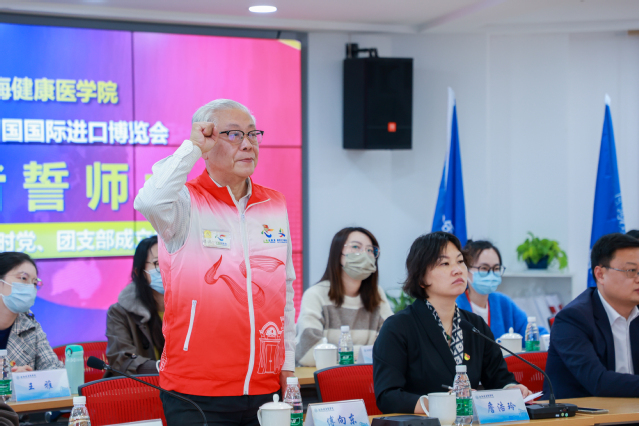 根据工作实际情况,为进一步做好服务进博,充分发挥党、团组织的凝聚力和战斗堡垒作用,动员党、团员志愿者发挥先锋模范作用,激发青年团员积极向党组织靠拢。以党建带团建,形成一支健康“红色尖兵”小队。经研究,决定成立上海健康医学院第五届进博会志愿者临时党、团支部,校党委组织部副部长詹浩玲宣读了决议,并希望“健康小叶子”们在进博志愿服务岗位上,做到迅速响应、冲锋在前。