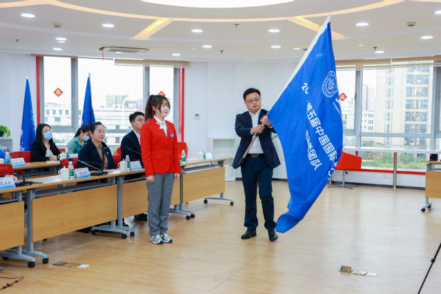 大会最后,校党委常委、宣传部部长李兆伟代表学校党委,为本届志愿者团队授旗,并对即将踏上第五届进博会征程的“健康小叶子”们送上最美好的祝福,并对“健康小叶子”们提出了三点希望: