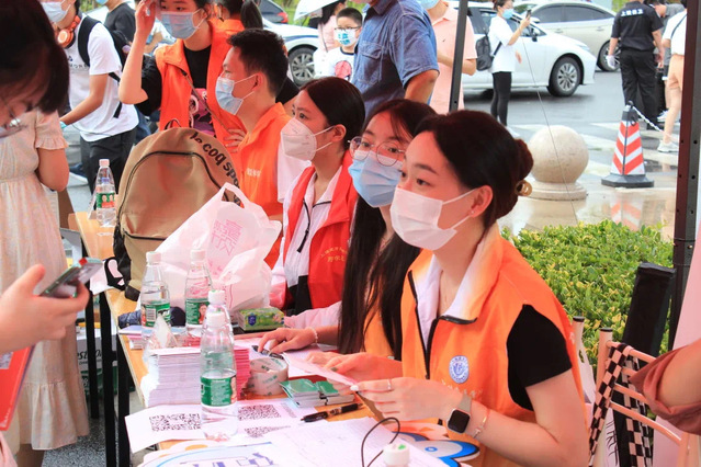 去年九月初,疫情防控进入常态化,我校安排各年级学生错峰返校,为加强疫情防控,由校团委牵头联合学校各职能部门一同开展迎新志愿者活动。活动前期,各位负责老师与同学们就人员分配、物资统筹等多个方面的问题进行探讨与研究。在新生报到的 2 天时间里,我校调派出367 名“健康小橘子”,服务 3244 人次新生及其家长,使用 22390 张行李牌,单日最高步数达 38729 步。