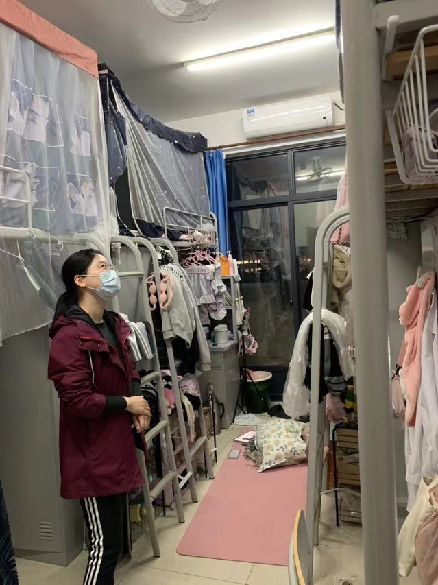不仅是学生志愿者,老师们在疫情防控工作中也献出了自己的一份力。尚在哺乳期的王雅老师放弃了与家人团聚的机会,第一时间主动加入校园抗疫驻守队伍。她24小时全天候驻守学生生活园区,关心同学们的生活、心理和学习,将学校的暖心保障措施及时准确传达给每一名留校学生,用自己专业的心理学知识为学生解疑释惑。