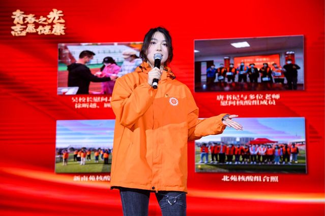 校青年志愿者协会顾雅婷同学带来《我听说——我们的战“疫”故事》分享,她回顾了2022年三月在上海本土新冠肺炎疫情反复、疫情防控形势严峻的情况下,无数“健康小橘子”在校园里不惧艰辛、风雨无阻的战“疫”故事。上健医青年们用实际行动践行了“奉献、友爱、互助、进步”的志愿精神,这也正是当代雷锋精神在防疫抗疫中的真实体现。