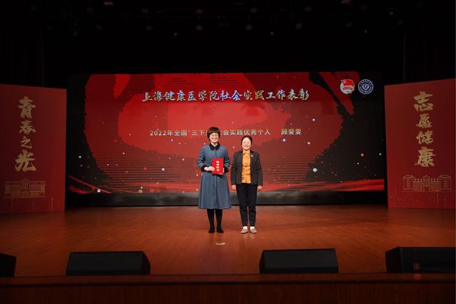 社会实践和志愿服务工作作为我校开展实践育人的重要抓手,是展示新时代健康学子精神风貌的重要舞台。2022年,我校在实践育人工作中取得了长足进步。大会表彰了国家级荣誉奖项:第六届中国青年志愿服务项目大赛金奖、2022年全国“三下乡”社会实践优秀个人。市级荣誉奖项:2022“知行杯”上海市大学生社会实践项目大赛特等奖2项、二等奖2项、三等奖3项,并捧得“优胜杯”;2022年“知行杯”上海市大学生社会实践项目大赛优秀指导教师5位、先进个人2位;第三届上海市卫生健康行业青年志愿服务项目大赛银奖1项、优胜奖1项;“奉献杯”第三届上海青年志愿服务项目大赛暨第六届中国青年志愿服务项目大赛上海站铜奖1项;上海市第五届进博会志愿服务先进集体;上海市第五届中国国际进口博览会优秀志愿者1位。校级荣誉项目:15支校级暑期社会实践优秀团队、15位暑期社会实践优秀指导教师以及15位暑期社会实践团队先进个人;2022年度上海健康医学院志愿服务品牌优秀项目3项;优秀志愿者培育基地6个;志愿服务工作优秀指导教师17位、优秀志愿者团队15支、优秀志愿者98位、优秀防疫志愿者42位;青年志愿者协会优秀骨干20位;上海健康医学院第五届中国国际进口博览会优秀志愿者10位、提名奖10位。