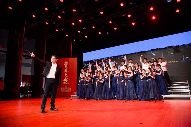 我校大学生艺术团燕起舞蹈团带来舞蹈《一起来志愿》;本次表彰大会在大学生艺术团至善合唱团带来的大合唱《彩页非凡》中落下帷幕。