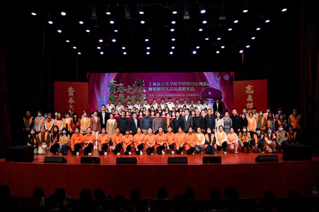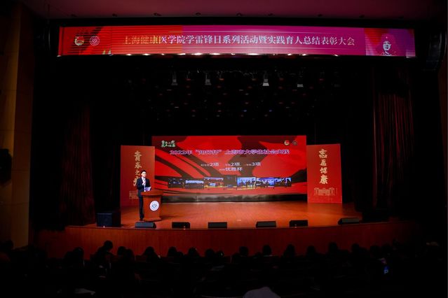 今年是毛泽东等老一辈革命家为雷锋同志题词60周年。为全面深入学习贯彻党的二十大精神,深刻把握雷锋精神的时代内涵,更好发挥志愿服务实践育人功能,3月7日下午,“青春之光 志愿健康”上海健康医学院学雷锋日系列活动暨实践育人总结表彰大会于北苑1号楼400人报告厅隆重举行。共青团上海市委员会学校工作部部长任浡,上海市卫生健康委员会团委书记何江江,上海市健康促进中心副主任陈德、上海市科技馆文明创建科科长姚茵茵、团委副书记沈嫣,天使之音沙龙创始人曹小夏,上海市浦东新区卫生健康委员会团工委书记廖兴斌,上海浦东新区社会发展基金会理事长姜家旺、秘书长王玉,以及上海健康医学院党委书记郭永瑾,党委副书记、副校长唐红梅,学工部部长吕晓丽,校友工作办公室副主任、教育发展基金会秘书长王红,各部门、各学院、各附属医院党团组织负责人,校内各培育基地负责人和50余家校外志愿者实践基地指导老师出席本次大会。