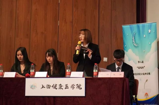本次参加比赛的院校有:东华大学、复旦大学上海医学院、上海健康医学院、同济大学、上海民航职业技术学院、上海海事大学、上海第二工业大学、上海财经大学、上海体育学院、华东师范大学、上海中医药大学、上海师范天华学院(以上排名不分先后)。正方:上海健康医学院,所持观点:当孩子患有自闭症,家长应该告知学校孩子的病情。反方:华东师范大学,所持观点:当孩子患有自闭症,家长不应该告知学校孩子的病情。比赛的最后阶段对方提出:作为家长,没有必要让自闭症孩子去走一条高风险的人生路。但我方运用强有力的事实反驳道:自闭症本无错,隐瞒不是长久之计,告知与否可能都会给孩子带来伤害,但是坦白就多了一份理解的可能性。我方在最后提出:要多一些信任,多一些坦诚相对,把手心摊开,才能被拉入社会这个大家庭。真诚地表达了对美好世界的期盼,也让本次比赛一锤定音。其中我校黄佳楠获得复赛最佳辩手、半决赛最佳辩手、全程最佳辩手。