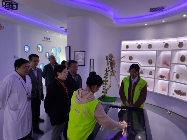 王莲华书记一行在郑书记和许校长的陪同下参观了北苑的基础医学互动学习与实训中心,体验了多个互动项目,王书记对我校互动学习中心建设的专业性、展品的丰富性、布展的科学性予以了肯定,并表扬了学生志愿者的讲解服务。