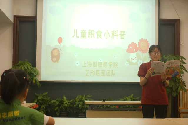 7月14日上午,上海健康医学院“艺形医意”暑期社会实践团队来到了杨浦区江浦路街道陈家头睦邻中心,进行了第一次线下科普活动。随着社会发展水平的升高,人们对健康知识的需求不断提升,此次活动旨在提高大众对儿童积食防治知识和健康饮食管理的认识,降低发病率,提高知晓率。“艺形医意”团队为本次社会实践活动做了充分的准备。 倏忽温风至,因寻小暑来,暑气蒸腾,“艺形医意”团队与上海睿家社工服务社在陈家头睦邻中心围绕儿童日常疾病预防开展了夏日儿童积食预防科普的主题活动。