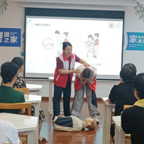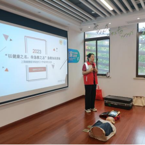 7月20日上午,团队来到了上海市浦东新区康桥镇周康新苑社区,以小班化教学模式,开展主题为“以健康之名,传急救之志”的应急救护科普知识讲座。