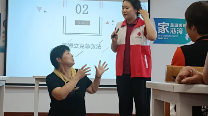本次活动围绕“健康”为主题,进行应急救护知识与技能方面的科普,主要包括心肺复苏(CPR)及除颤仪(AED)的使用、海姆立克急救法、包扎等一系列的急救科普。讲师通过生活实例引入,各项操作要点讲解,利用口诀记忆法并结合助教实操演示,让社区居民更通俗易懂地知晓了应急救护的必要性及多项技能的可用之处。