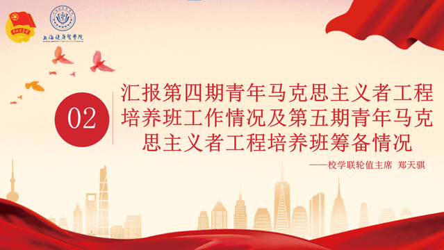 2023年3月13日下午,由共青团上海健康医学院委员会主办的第五期青年马克思主义者工程培养班开班典礼顺利举行。校团委书记马志波、校团委挂职干部林剑以及第五期青年马克思主义者工程培养班学员参加此次活动。