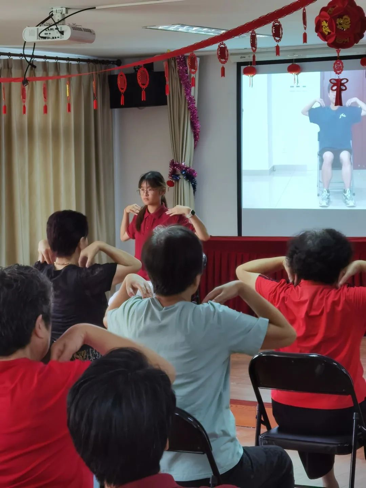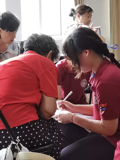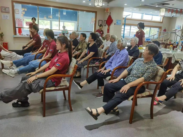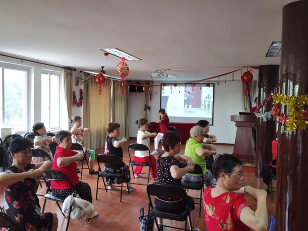 团队成员对囿于下腰痛困扰的老年人们进行了椅子操康复运动训练的带教,椅子操不仅简单且容易实现,只需一把椅子就可锻炼身体,它有助于改善身体灵活性、促进血液循环和增强肌肉力量。在带教环节,由视频教学与真人现场演示相结合的方式进行,团队其他成员则是在一旁悉心指导与纠正,防止老年人在运动时发生挫伤等突发情况。
