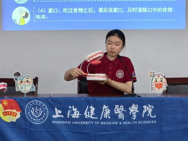 7月20日下午,团队成员前往上海市周浦第二小学开展暑期口腔科普宣讲活动,从牙齿的结构、功能、分类、替换、常见的儿童口腔疾病以及相关预防与治疗方法等方面,借助刷牙口诀、刷牙故事绘本等多种形式,深入浅出地向同学们进行口腔知识科普。