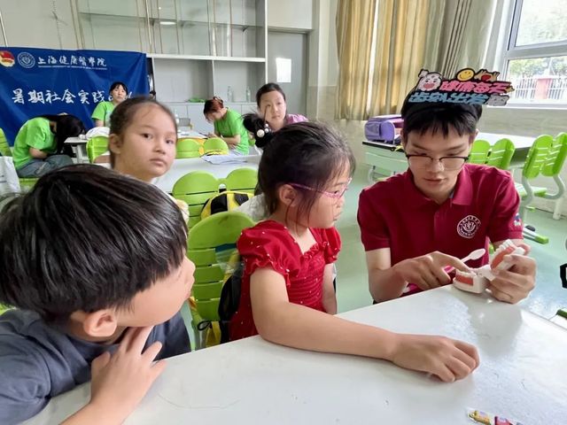8月2日上午,团队成员前往上海市南京东路社区活动中心开展暑期口腔健康科普活动。本次的科普采取更多元的形式,成员们设计了关于“食物对牙齿的影响”小游戏、增加了口腔健康知识小练习,科普知识融入游戏,课堂测验巩固所学,传递健康生活方式、正确认识口腔疾病的危害,将课堂所学进行实践转换,把专业知识内化于心、外化于行,辐射到日常的生活工作中,帮助同学们养成良好的生活习惯,切实增强幸福感。