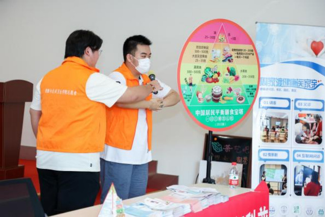团队从家庭急救、用药安全、膳食营养等方面为居民开展了健康科普,通过现场演示、道具助力、图文结合等内容,团队用简单易懂的方式向居民普及营养健康知识。在家庭急救方面,通过情景代入,演示了如何利用海姆立克法开展急救;在用药安全方面,健康科普团向居民科普了如何正确地储存和使用药品,以确保药品的有效性和安全性,同时帮助居民了解药品的分类、作用和副作用;在膳食营养方面,团队通过视频和图文等形式向居民科普了不同食物对身体的影响以及如何合理搭配膳食,保持健康的体重,预防慢性疾病的发生。活动中,科普团队向居民派发了精美的自制宣传折页和实用健康小工具,例如BMI体重指数转盘、食品营养成分速查转盘等,并指导社区居民正确使用。社区居民在学习后表示了解到了之前许多健康方面存在的知识误区,意识到了正确的健康饮食应该是多样化、均衡的。
