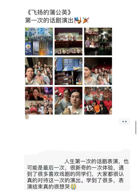 不少新同学看完演出后反映,《飞扬的蒲公英》既让他们看到了老一代赤脚医生在艰苦年代对人民的伟大贡献,也看到了新时代的乡村医生像蒲公英种子一样,迎风而起、落地生根、默默奉献,平凡而又伟大,表示要立志做“健康的守门人,人民的向阳花”。