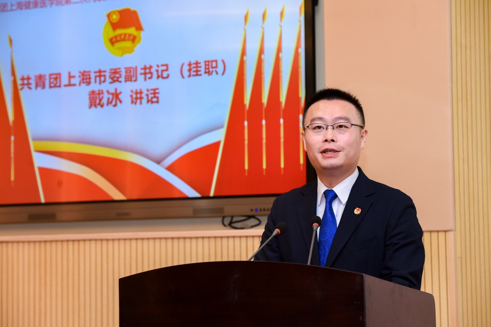 团上海市委副书记戴冰代表共青团上海市委员会向大会的召开表示热烈的祝贺。戴冰同志表示,党的十八大以来,上海健康医学院共青团在习近平新时代中国特色社会主义思想的引领下,贯彻落实习近平总书记关于青年工作的重要论述,深入推进共青团改革,切实提高了团组织的“政治性、先进性、群众性”,在突出政治导向、勇于自我革新、深入服务青年等方面取得了丰硕的工作成果。戴冰表示,这些工作证明了上海健康医学院拥有一支对党忠诚、深入青年、敢于担当、善于学习的优秀团干部队伍。他也对上健医共青团提出了三点希望:要坚持政治引领的主责主业,实现铸魂育人、立德树人的重要目标;要坚持党委领导下的院长负责制,对标行业领先水平,引领青年岗位建功新时代;要坚持“不忘初心、牢记使命”,加强基层组织政治建设,推进共青团改革,激发组织活力。