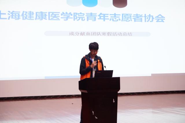 接着,志愿者代表宋怡雯同学为这次寒假志愿者活动做了发言总结。她亲自参与了周浦医院,上海科技馆和自然博物馆三个基地的志愿服务,所以她说寒冷的气候并不会削减同学们所洋溢的热情,不畏艰辛和恶劣天气,他们的责任感让自己体会到了志愿活动的教育意义,这是一个提高大学生自我素质的契机,展现了我们上海健康医学院学生的时代风貌。