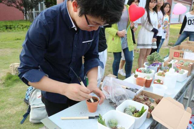 在整个社团的义卖活动中,由植物社所栽培种植的多肉植物,外表美观,形式多样,植物品种众多,吸引许多同学前来购买。有许多购买者或者同学现场问起如何栽培多肉植物,植物社社长和社员非常耐心回答对方的问题。其次,植物社在此次义卖活动中加入现场体验环节,让同学自己亲身感受种植多肉植物,而植物社社长和社员在一旁细心指导,活动现场气氛良好。无形中也培养大家对于种植植物的兴趣,更重要的是让大家在培养植物的同时也献出自己的一份微小的爱心。