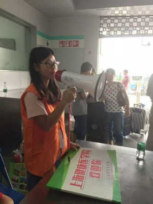 应学校要求,早晨七点半到岗。在周浦东地铁站的志愿者们早早地集合在北苑东门口,携带迎新宣传板到达16号线周浦东地铁站,与地铁站工作人员做好沟通之后,分别在1、3出口处举起迎接新生的宣传板,为迎接新生的到来做好准备。