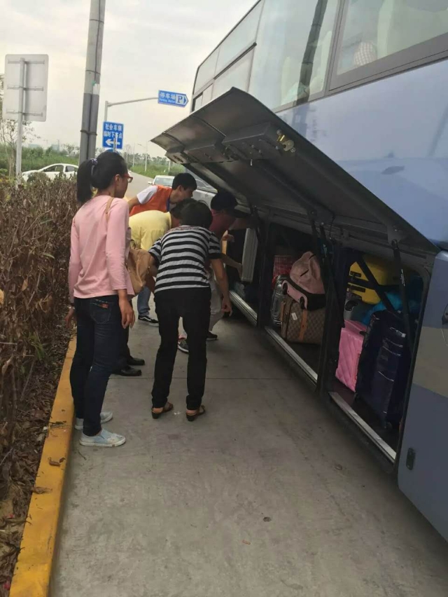 在这个欢庆教师节的日子里,也迎来了上海健康医学院这么一批可爱的同学——16级新生的学校报道。为了让新生们和陪同的家长们减轻拿行李的负担,并且舒缓附近的交通压力,学校安排了志愿者在16号线周浦东地铁站进行接送,并标配了往返地铁站和学校的短泊车。