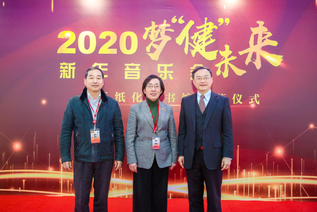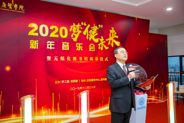 12月30日,我校2020梦“健”未来新年音乐会暨无纸化图书馆揭幕仪式在新南苑图书馆顺利举行,校党委书记郑沈芳、校长黄钢、副校长沈国芳和相关职能部门、二级学院党政领导以及师生代表出席了本次活动,300余名师生欢聚一堂,在我校新落成的无纸化图书馆共迎新年。