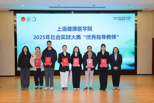 附属医院团委书记为2025年“知行杯”上海市大学生社会实践大赛“先进个人”“优秀指导教师”以及“获奖项目”代表颁奖。