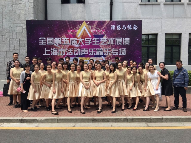 5月6日的是大合唱和小合唱组别的比赛。当日九时,我校大学生艺术团合唱队抵达了上海交通大学,在准备上场之前,指导老师朱华英做了最后的情绪调动以及发声准备,每个同学们脸上都洋溢着自信的笑容,充满着热情与期待。合唱队的同学们表演了两首作品,《期待》展现了同学们真挚、细腻的感情,《DONE BY THE RIVERSIDE》则表现出了我校同学们的活泼和青春。每一名合唱队的同学都表现出了自己最好的状态,在舞台上留下了自己优美的歌声以及无悔的表现。我校大学生艺术团合唱队的同学们面临时间紧、任务重的压力,每周训练三次,持续了近两个月的时间。五一假期也加班加点,朱华英和马志波两位老师假期陪学生进行训练,我校师生这种为了学校荣誉不计得失、努力拼搏的精神,也换来了我校在大艺展舞台上的精彩展示。
