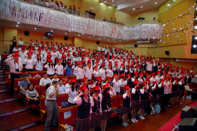会上,校长黄钢为同学们致成人寄语,他告诉同学们成人的深刻含义,对学生寄予深切期望:期盼同学们懂得感恩;期盼同学们担负起责任;期盼同学们独立面对未来,面对人生道路上的坎坷,认准目标,勇往直前。随后,由校领导为学生代表进行授帽仪式,校领导为每位同学授帽、拨穗。红色五角星结构的“成人帽”象征着青春和活力;系挂在帽尖上的黄色流苏象征着光明与自立。面对国旗,所有学生举起右手宣誓,呐喊出自己的青春誓言。经过成人礼洗礼的卫校学子将会履行承诺,无愧人生,无愧时代!