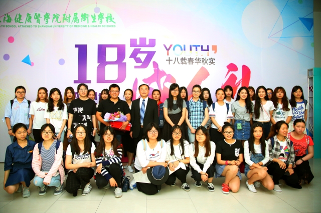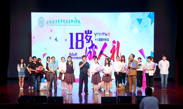 6月2日,以“成长 感恩 责任 梦想”为主题的上海健康医学院附属卫生学校2014级学生十八岁成人礼在北苑400人报告厅举行,校党委书记郑沈芳、校长黄钢、副书记李明磊、副校长唐红梅以及附属卫生学校、各学院师生、家长代表参加了此次活动。