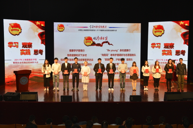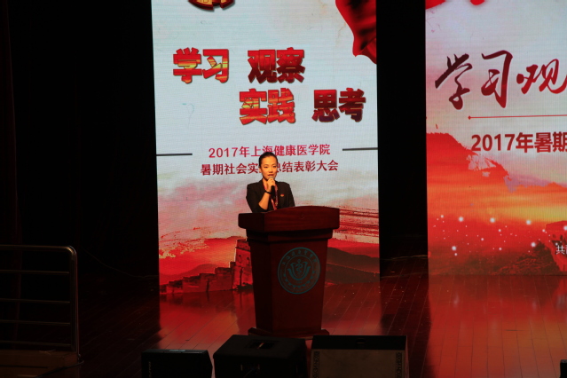 10月26号下午4点,上海健康医学院2017 年“学习•观察•实践•思考”暑期社会实践总结表彰大会于北苑400人报告厅隆重举行。校党委书记郑沈芳、副校长许铁峰、学工部长、各学院党总支书记、副书记、团总支书记以及17级新生出席了本次表彰大会。